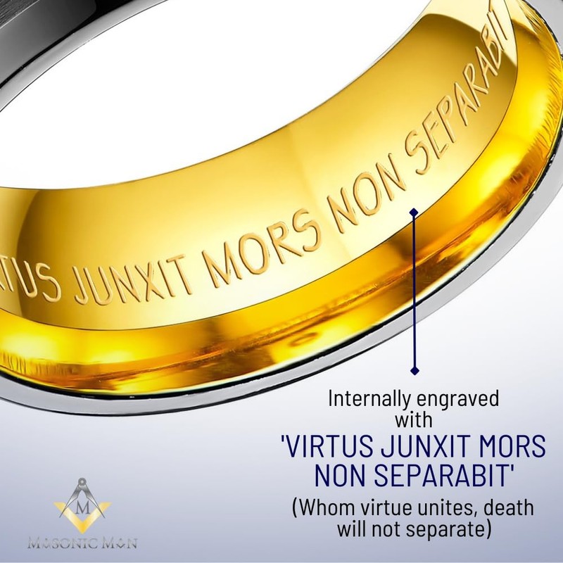 - ENGRAVED INSIDE with VIRTUS JUNXIT MORS NON SEPARABIT - translates as WHAT VIRTUE HAS JOINED TOGETHER DEATH SHALL NOT SEPARATE