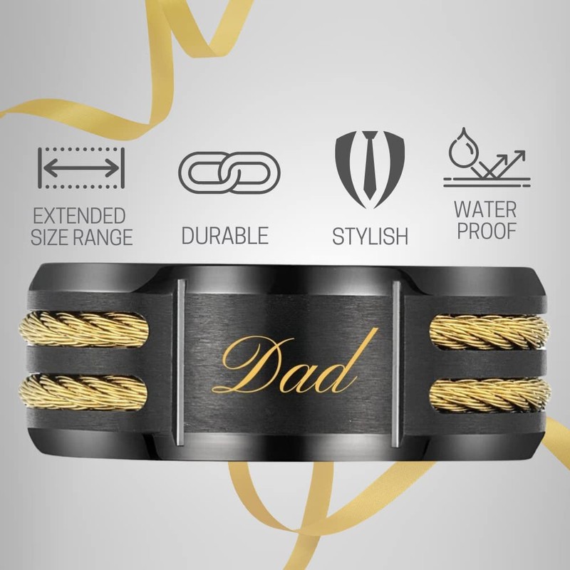 - Made from strong Titanium. This Titanium Dad ring is very light but extra strong making it the perfect material to use