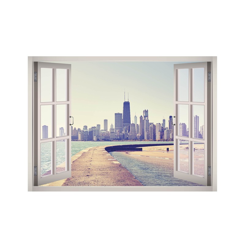 Willis Tower Chicago View Window 3D Wall Decal Art Removable Wallpaper Mural Sticker Vinyl Home Decor West Mountain™ W162 (Small (24''W x 17''H))