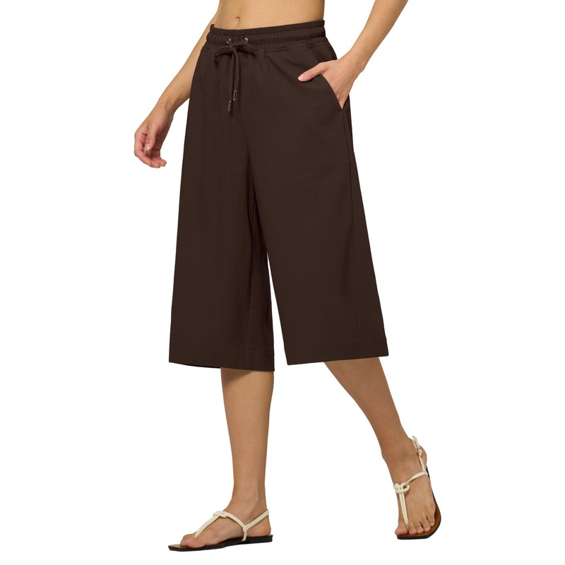 Willit Women's Linen Capri Pants Wide Leg Dress Casual Summer Pleated Capri High Waisted with Pockets 16" Dark Brown X-Large