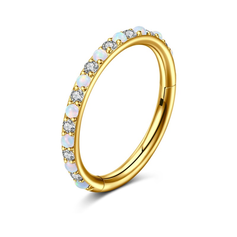• CUTE DESIGN The nose piercing jewelry is decorated with cubic zirconia and opal. Clear CZ gives the hoop a shiny and sparkling look to your ear or nose, the classic gold colour and simple design can be used for any occasion.