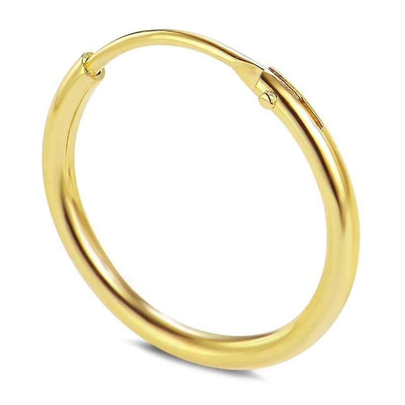 Willys Jewellery Single Unisex Creole Earrings 925 Sterling Silver 18K Gold Plated with Closed Ring or Ear Piercing, Sterling Silver