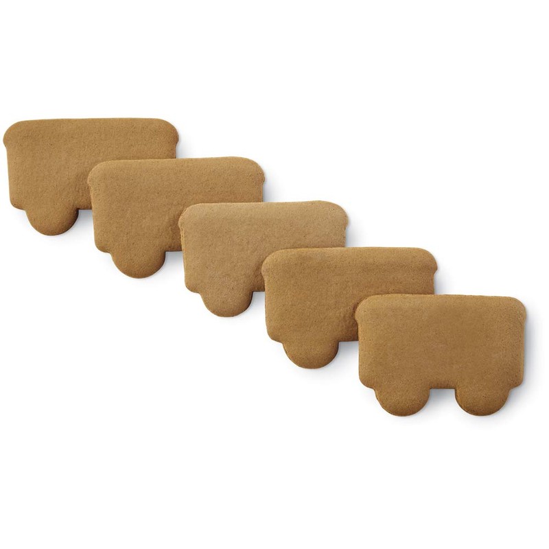- Gingerbread is pre-baked and includes engine, cargo car and caboose; assembled engine measures 5 in. long x 2.25 in. wide x 3.75 in. high