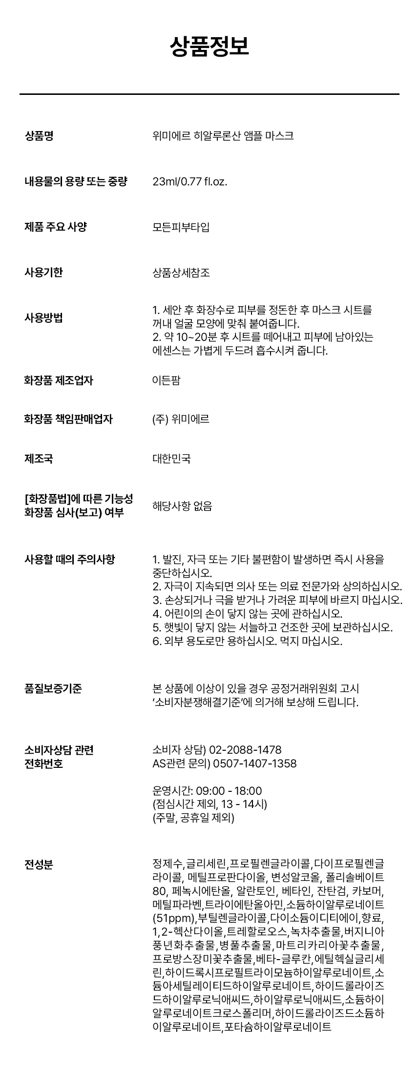 위미에르 히알루론산 앰플 마스크 1매 B">
