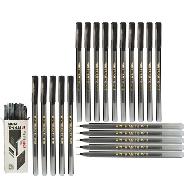 WIN 20 x 0.7mm Ball Pen Triam BLACK Smooth Ballpoint Pens School Office Business