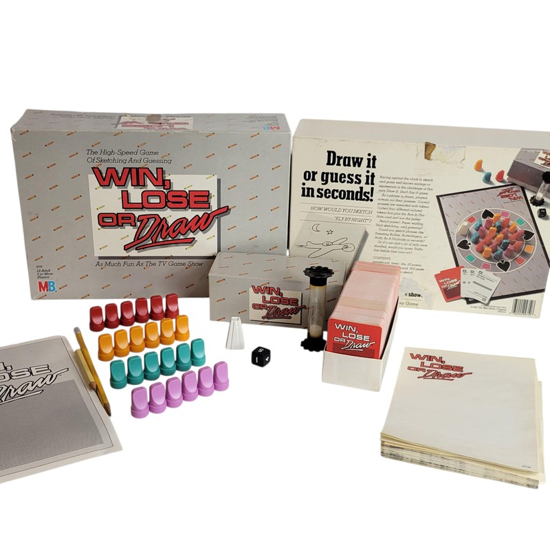 Game Contents: Game contents: gameboard. sand timer, die, 25 pawns, paper, pencil,Ace card, 503 cards with 1,006 phrases to sketch.Processing Time