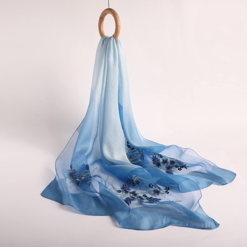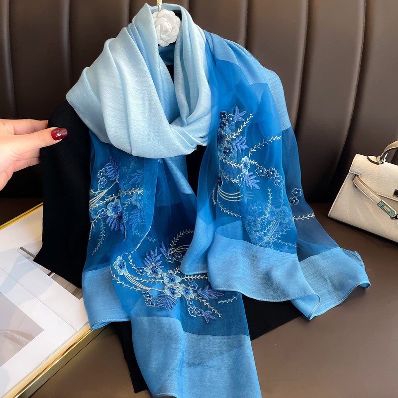 WINCESS.YU - Bufanda de seda para mujer, chales ligeros y envolturas para bodas, mantón de pashmina de moda, bufandas bordadas, Azul, ONE SIEE