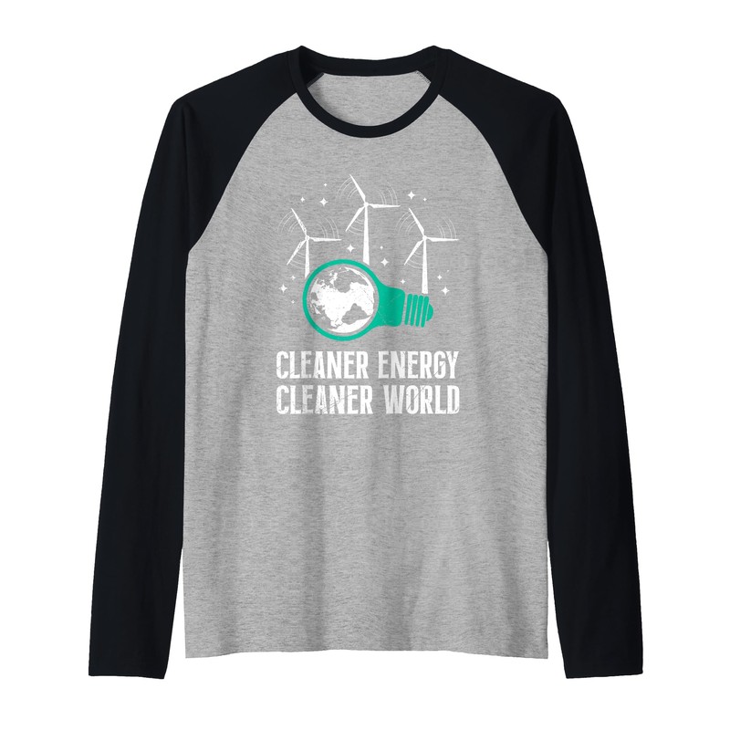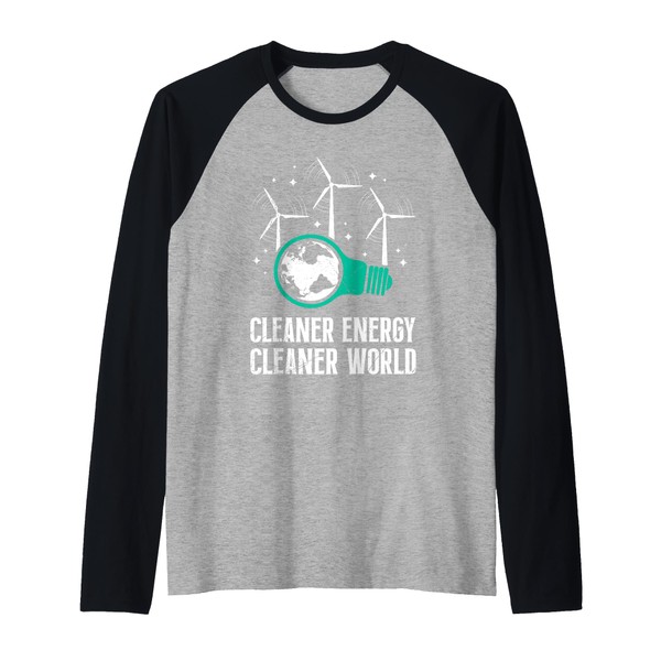 Wind Power Electric CLEANER ENERGY CLEANER WORLD Energy Raglan Baseball Tee
