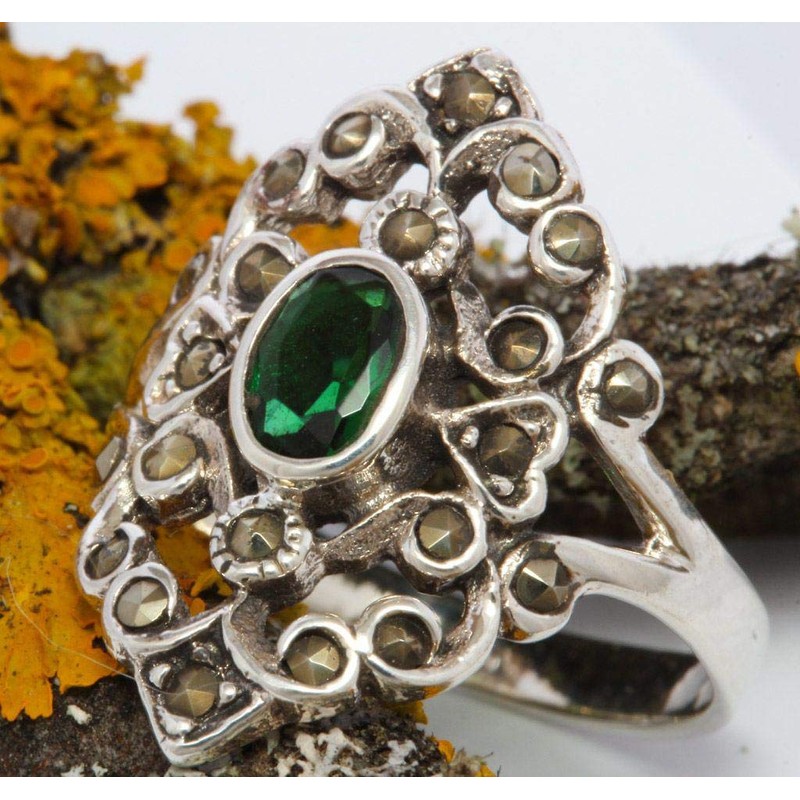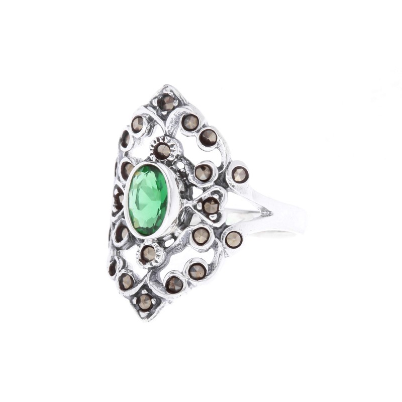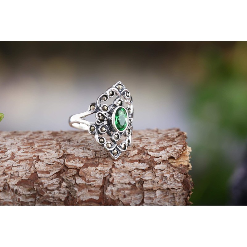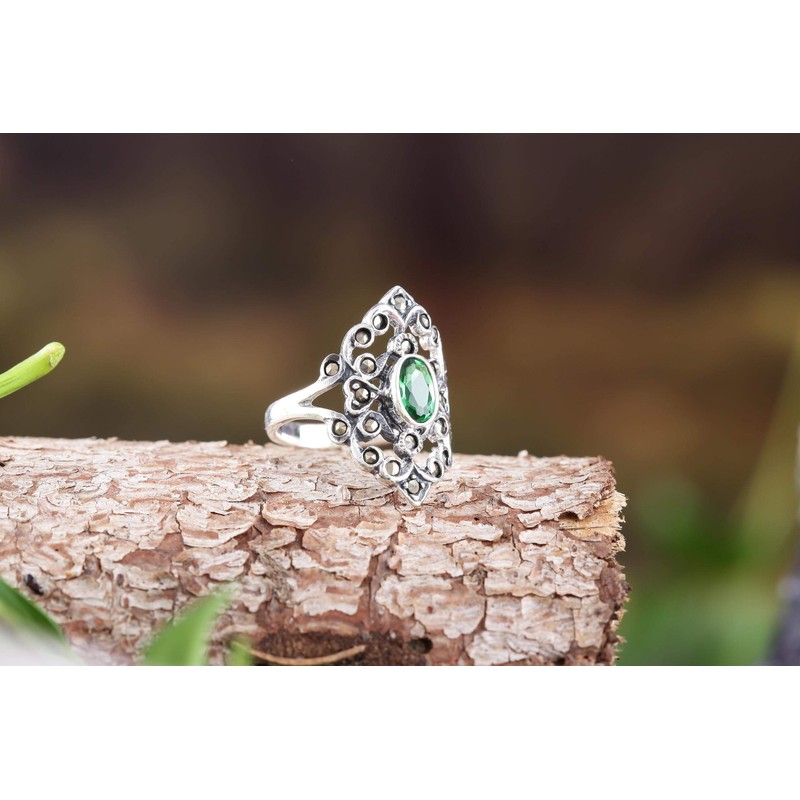 Windalf Luna Women's Medieval Ring 21 mm Green Emerald 925 Sterling Silver, Fabric, Cubic Zirconia