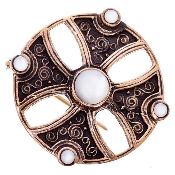 WINDALF Viking Cross Fibel ASUR Diameter 4 cm Mother of Pearl Brooch Pin Robe Clasp Bronze, Bronze, Mother of Pearl