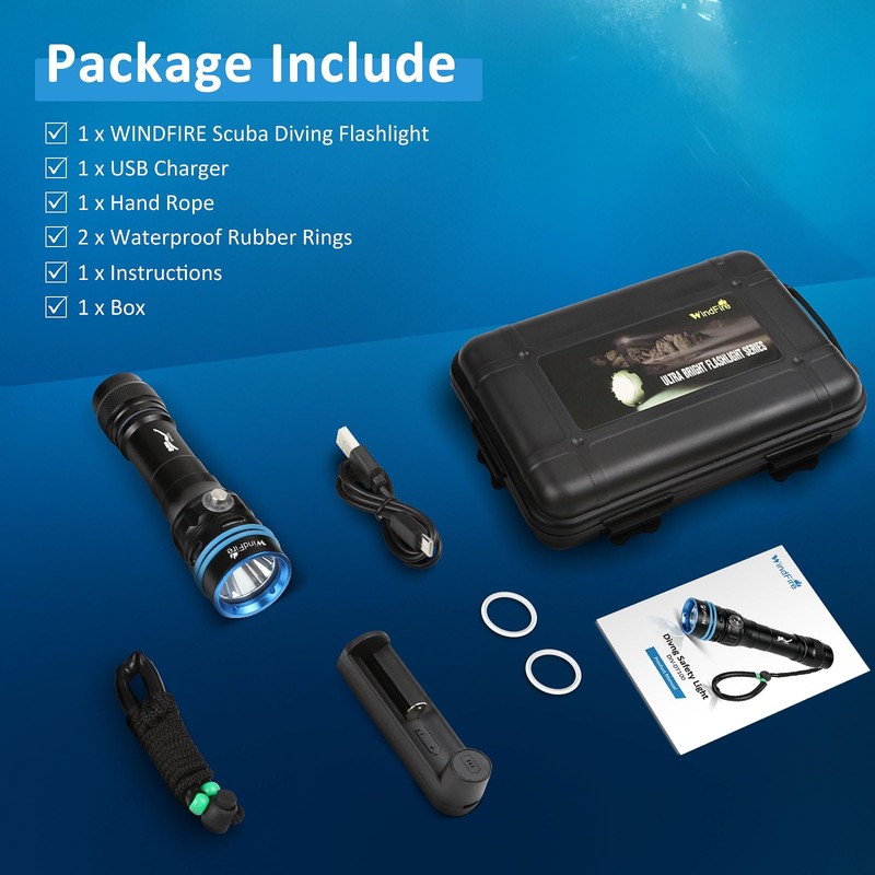 - Excellent After-sales Service – WINDFIRE provide a 30-day re turn deadline for any reason and 18-month service for quality-related issues. If you are not satisfied with our product, you can easily complete the return or exchange process through Amazon's return window. If you have any questions about our Diving Safety Lights, please don't hesitate to contact our professional customer at any time.