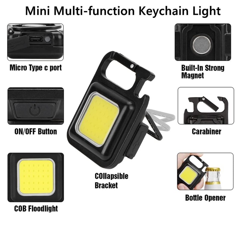 - ✅ 【Multifunctional Application】- This portable COB LED light with keychain, folding stand, magnet holder and bottle opener. The small COB flashlight not only suitable for emergency roadside maintenance at night but also an essential mini handheld flashlight for camping, night walking, fishing, hiking, emergency.