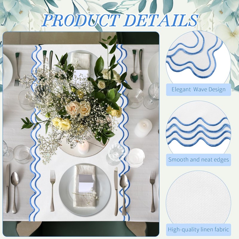 • A Very Sincere Gift: a scallop linen tablecloth is a cute and practical gift that can be use to celebrate their loved one's birthday or even an elegant wedding; This white blue color combination tablecloth can naturally decorate your table and provide an elegant and romantic atmosphere