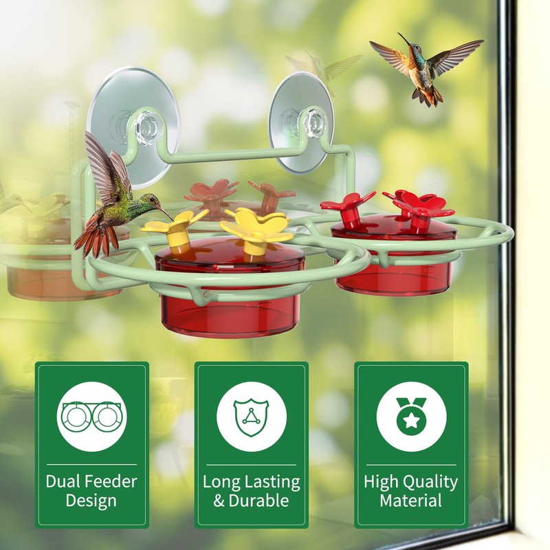 Dreamdrawer Window Hummingbird Feeder, Small Hummingbird Feeder for Outdoors with Strong Suction Cup - Metal Base & 6 Feeding Ports, Easy to Clean and Refill