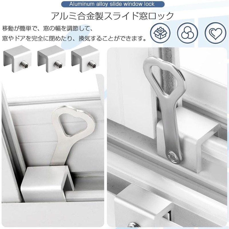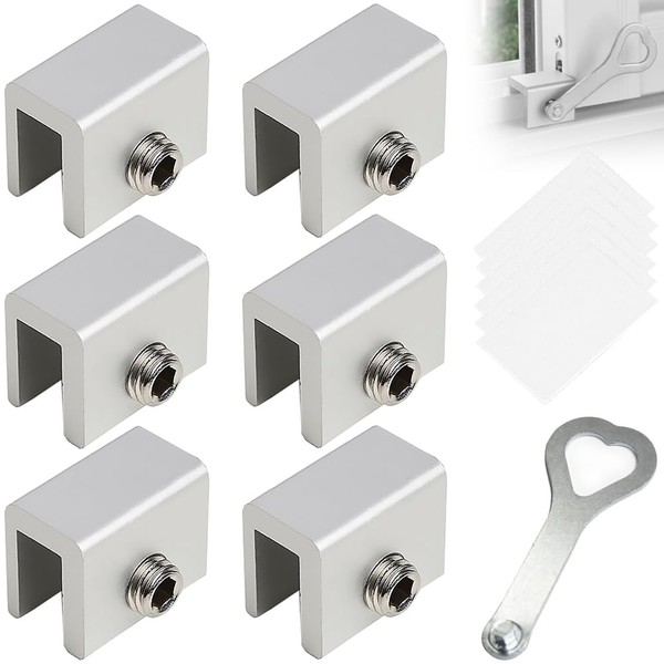 - Set Includes: 6 limit locks + 6 screws, mounting tools (vertical heart shaped hexagon spanner) x 1 piece diameter 0.2 inches (5 mm) protective plates x 4 pieces; Slide window locks are made of aluminum alloy, durable, rust resistant, and reusable. Sliding window lock has rubber cushion to prevent window scratches and scratches