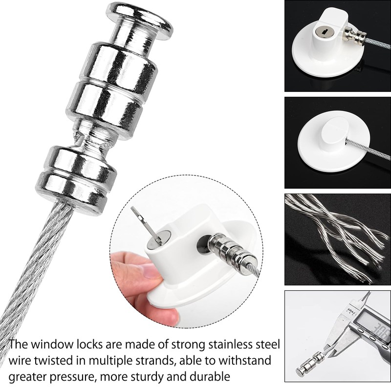 - 【Sturdy and Durable】Effective safety window locks are perfect for high rise apartments, homes with children or pets, or any other situation where extra security is needed. The window restrictor locks are made of sturdy metal heads and high tension steel cables, which are more durable.