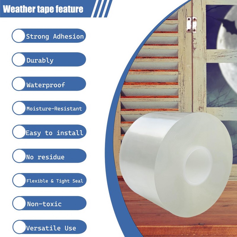 • High Quality Material:Made of durable, weather-resistant Nano tape, this tape creates an airtight seal to block drafts, dust, and moisture while remaining flexible in cold temperatures.keeps your home warm/cool and quiet in winter/summer.
