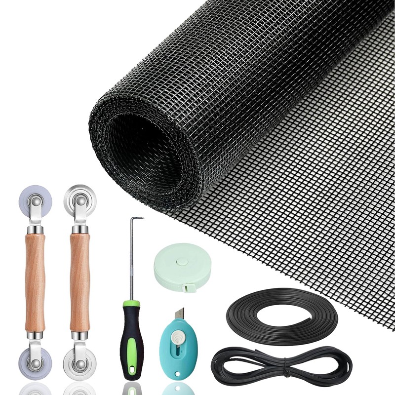 - 【Perfect 8 in 1 Window Screen Repair Kit 】This window screen repair kit is professional; it includes full tools for you easy to install a screen window easily: 1.Durable window screen mesh 2. Steel Bearing Roller and Nylon Bearing Roller 3. Spline with two sizes:0.16"and 0.14" 4. old spine mover: Hook 5. Utility knife and measuring tape. Note: Please check your product size carefully before purchasing