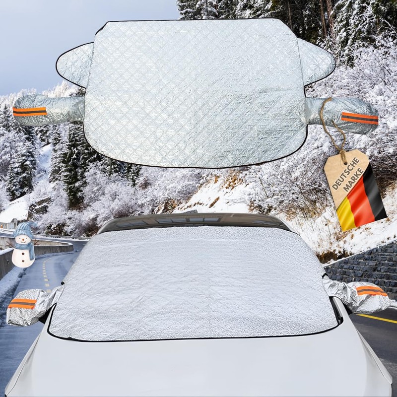 • - FITS AND SEATS: The windscreen cover fits most vehicles, including cars and SUVs. Thanks to the practical mirror covers, installation is a breeze and the cover does not slip.