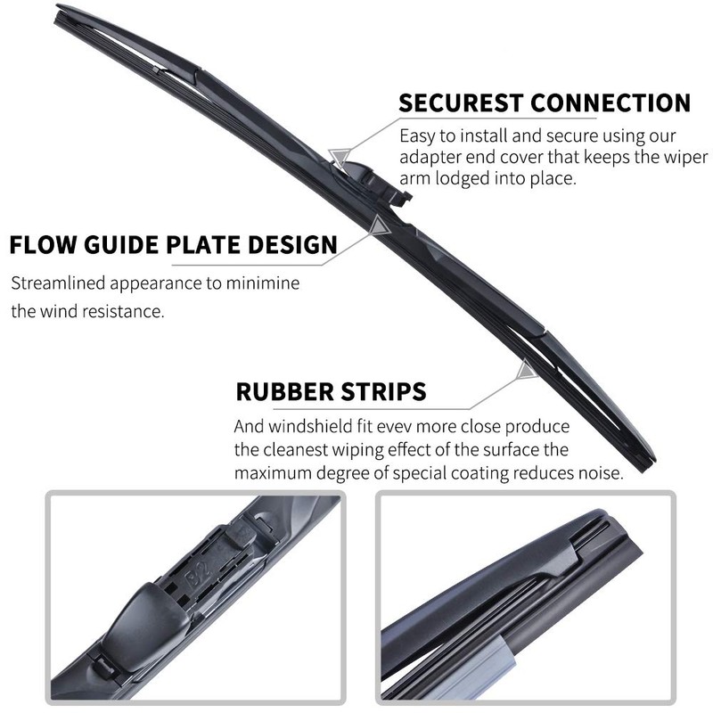 ✔ 3. The three-piece windscreen wiper is designed with wind mechanism. It has been specially developed by research and development of various types of speed winches. It can continue to maintain the scratching effect on the highway and wind, clear the road, protect and improve driving. Safety, reduce driving risk.