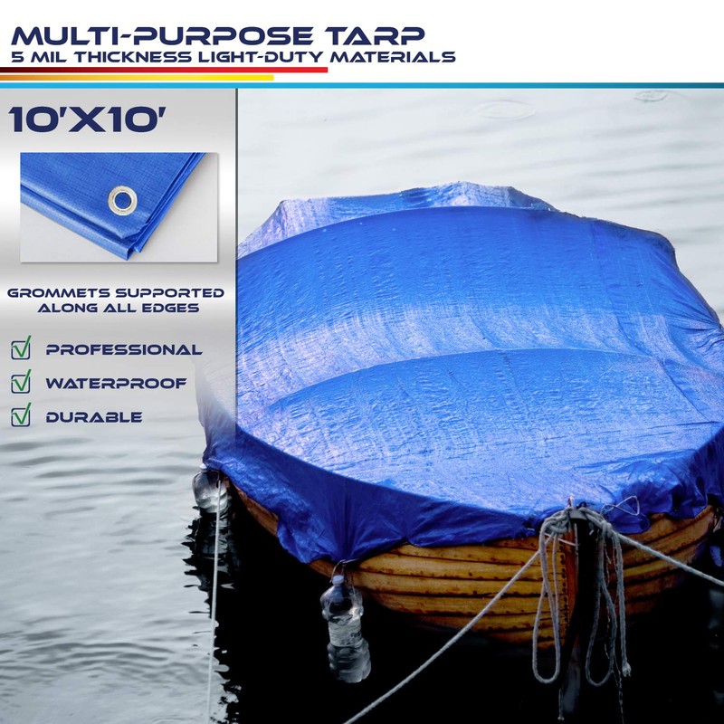 Windscreen4less 10' x 10' General Multiple Purpose 5 Mil Waterproof Blue Poly Tarp