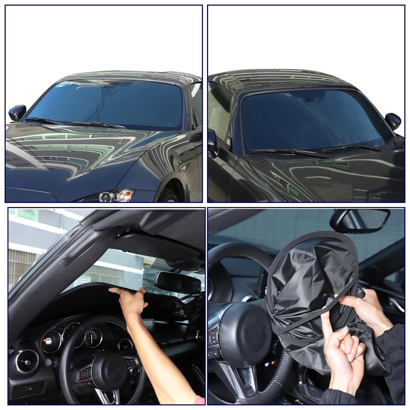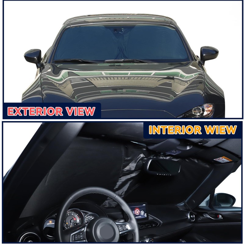 Windshield Sun Shade Compatible with Mazda MX-5 RF Miata 2016-2025 Accessories,Front Window Sunshade Sun Visor Protector, Foldable Windshield Sunshade Sun Shield Blocks UV Rays (Black)