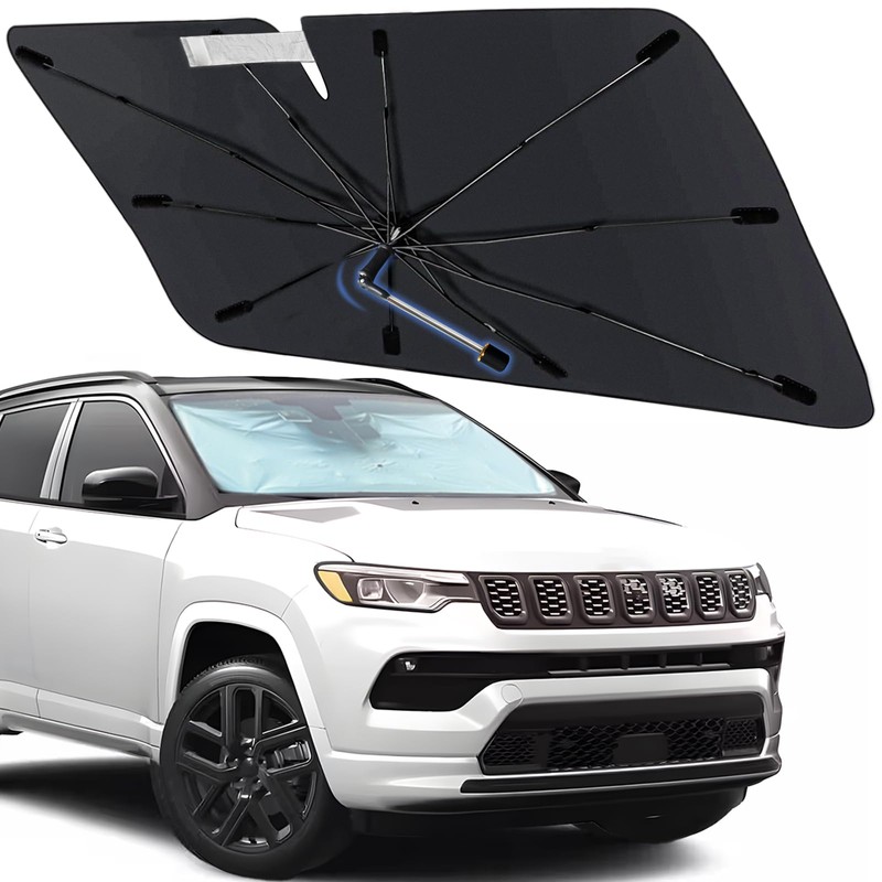 Windshield Sun Shade Umbrella for Jeep Compass 2017-2025, Foldable Car Sunshade for Front Windows with 360° Rotating Shaft, Custom fit Compass Sun Visor Shield for UV Blocking and Heat Insulation