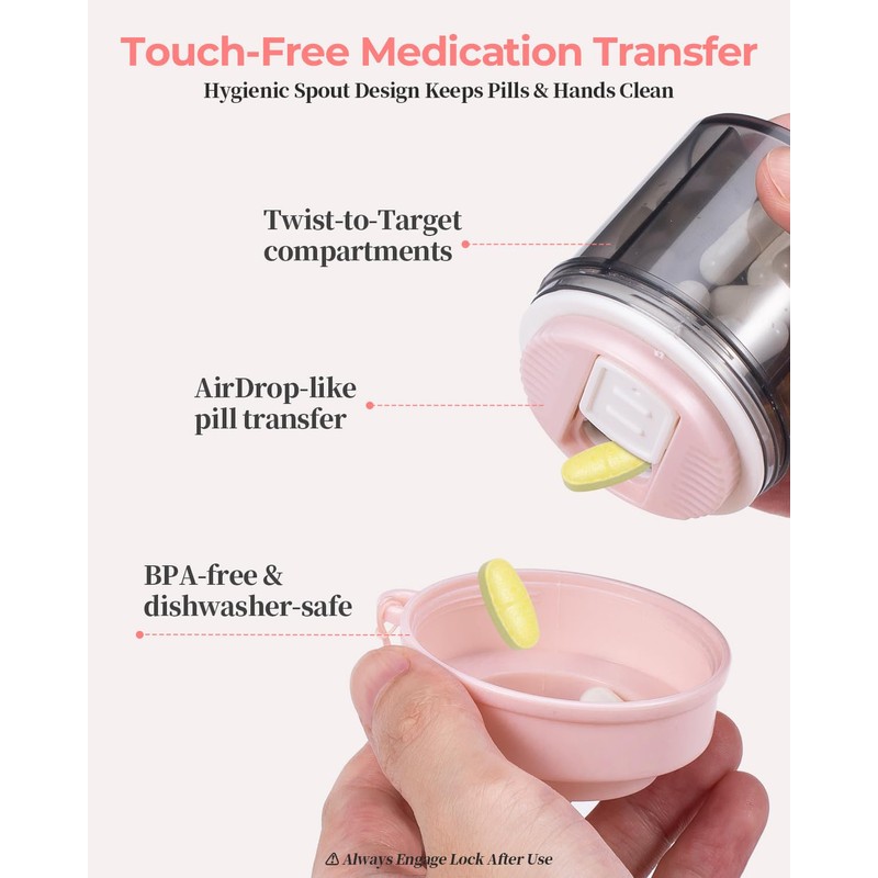 Windtrace 4-in-1 Mini Pill Bottle Organizer - Travel Pill Case for Small Pills & Supplements - Cute Medicine Container with Detachable Dividers (Not for Fish Oil/Large Vitamins)