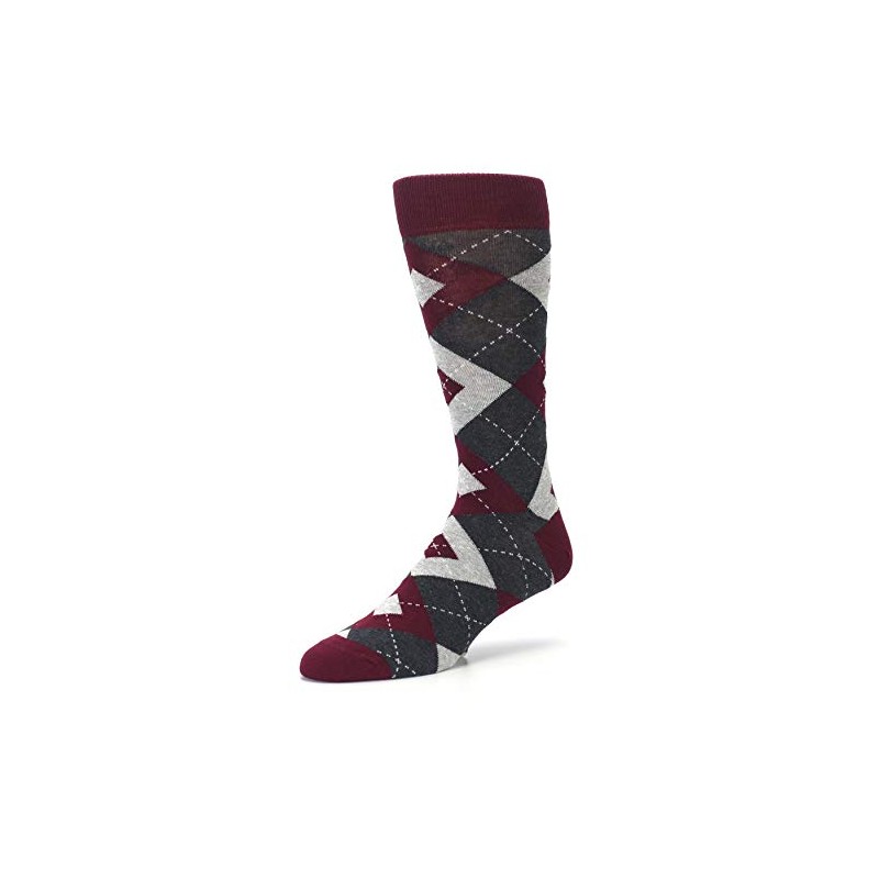 Wine Burgundy Argyle Men's Socks - Groomsmen Wedding Sock Kit with Gift Bags (10)