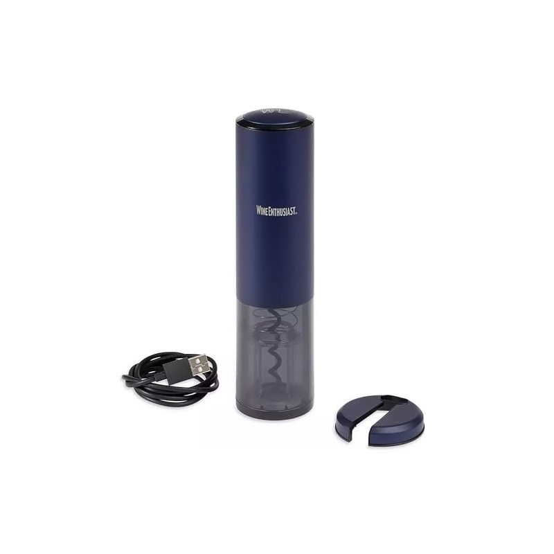 Wine Enthusiast Electric Blue Automatic Wine Opener with Foil Cutter – Battery-Operated Corkscrew with USB Charger & Indicator Light
