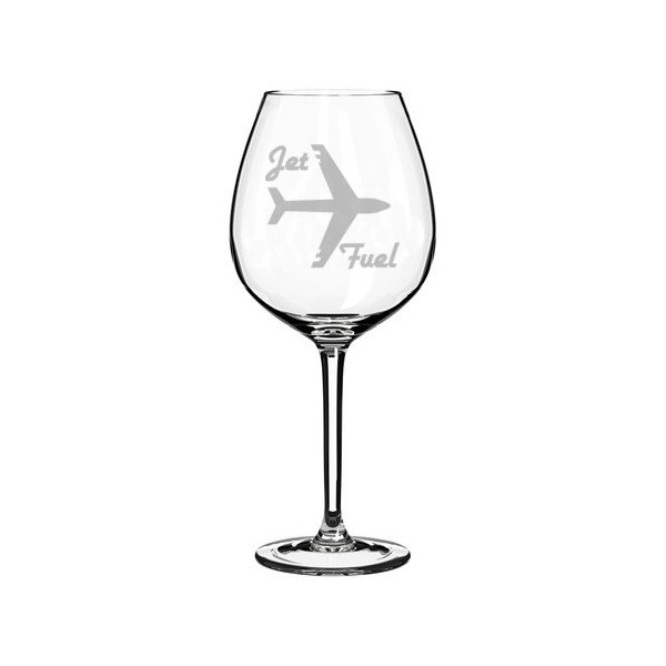 Wine Glass Goblet Airplane Pilot Flight Attendant Frequent Flyer Travel Jet Fuel (20 oz Jumbo)