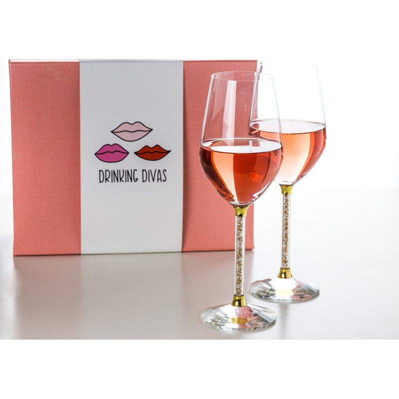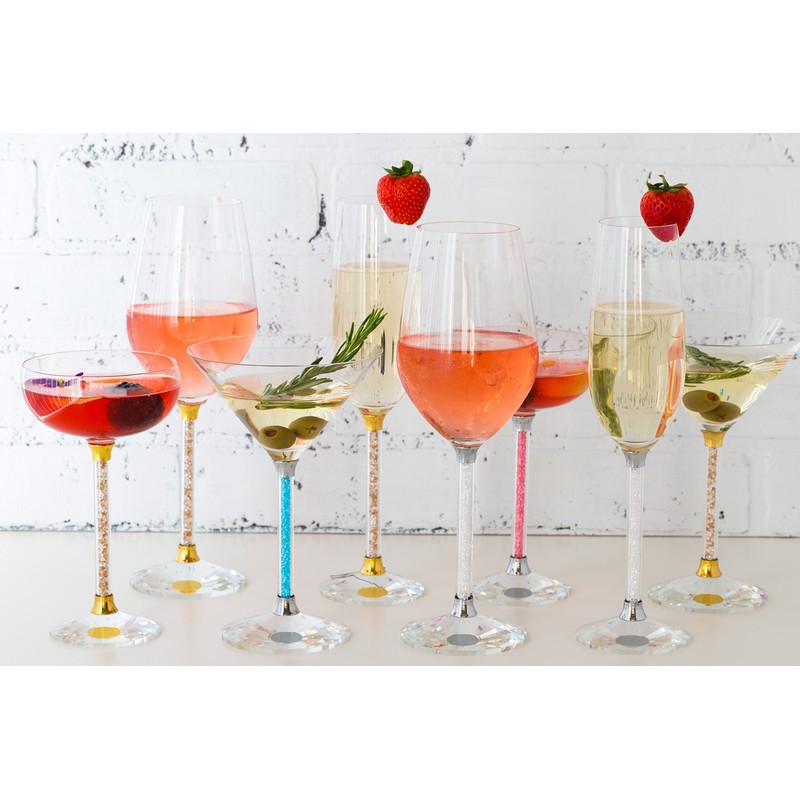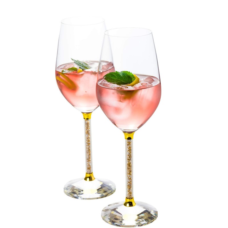 - BRILLANT AND BRIGHT- Bring the sparkle with this pair of modern crystal stemmed wine glasses. Each stem is filled with cut shimmering crystals, adding diamond like shine to your party, event or celebration.
