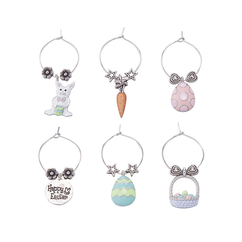 Wine Things EGGxellent Easter, Painted Wine Charms, Fits neatly around stem, Multicolor