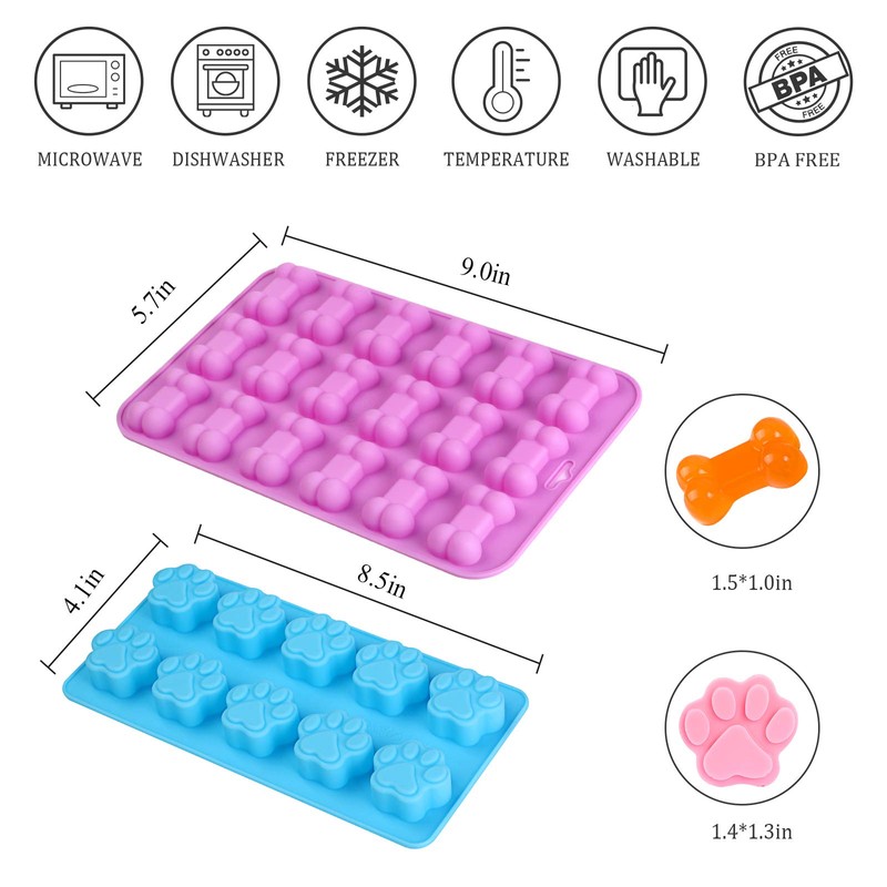 - Puppy dog paw and bone silicone mold, baking mold, used for jelly, candy, chocolate, ice cube, can bake dog snack biscuits