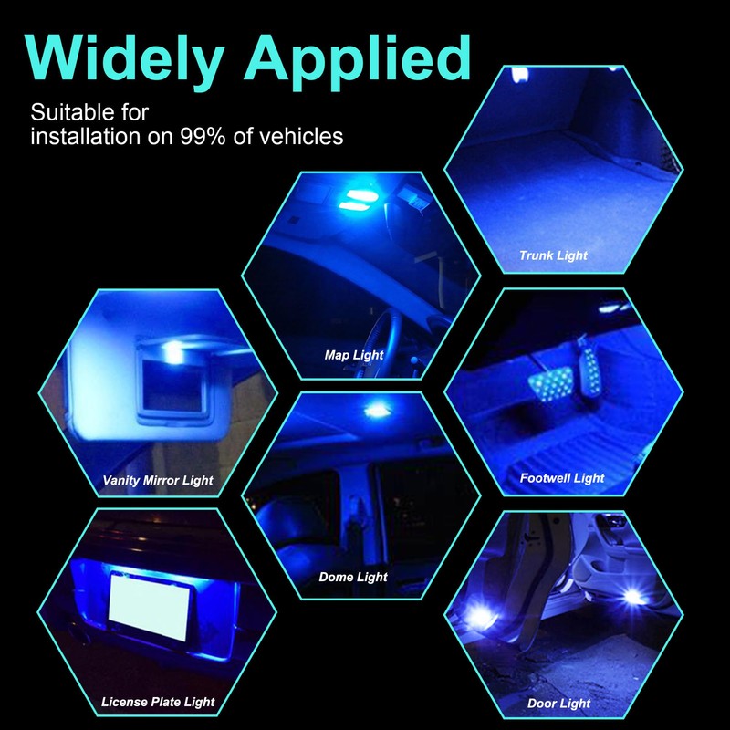 - Este juego de bombillas LED T10 está diseñado para reemplazar varios tipos de bombillas, incluyendo T10, T15, 194, 168, 158, W5W, 161B, 168A, 168NA, 175, 192, 193, 194B, 194G, 194NA, 194R, 2821 y 2825. Es una solución versátil para la mayoría de vehículos, ofreciendo una fácil actualización para las luces de tu panel de instrumentos, iluminación interior y mucho más.