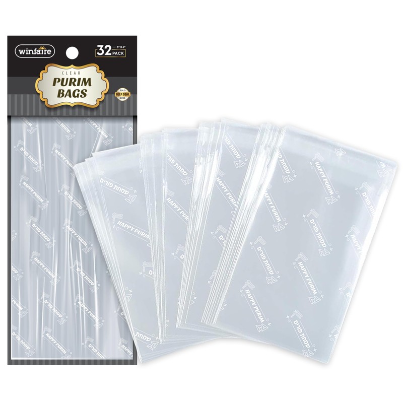 - HAPPY PURIM BAGS: Our cellophane treat bags include 32 gold classic Happy Purim designed cellophane treat bags with Fold Over Self Seal.