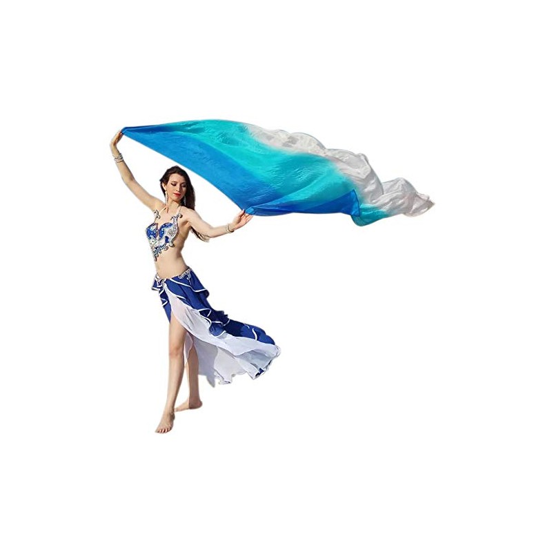 - Luxurious, high-quality 3-tone silk rectangular veils to mix and match with every belly dance costume in your closet. They are hand dyed and measure approximately 108" by 44". Weight of silk is 5mm.
