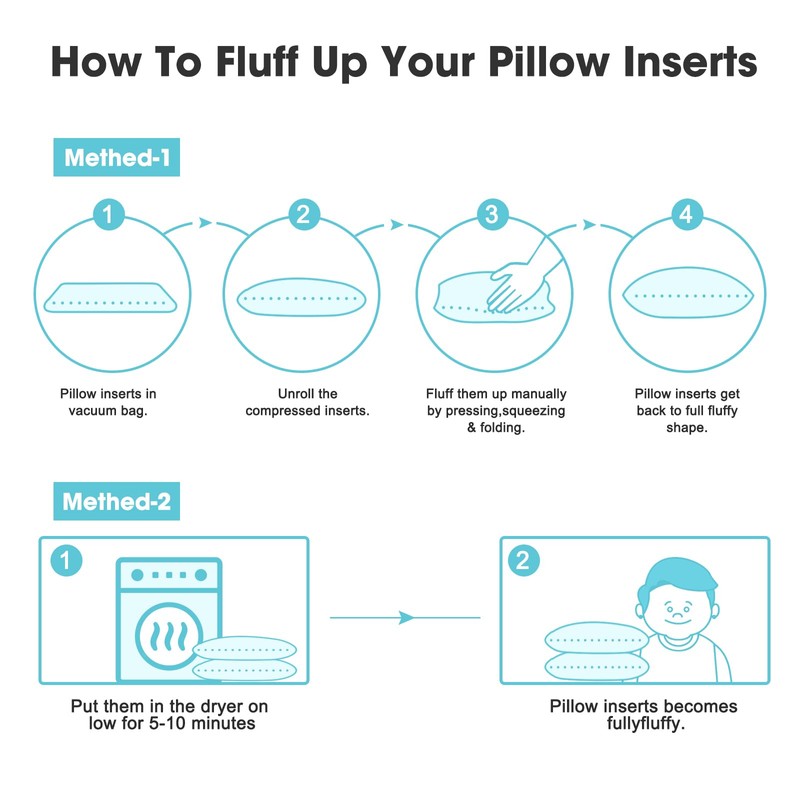- 🌟INSTRUCTIONS FOR USE:1.Throw pillow inserts will become wrinkled or flat after being compressed and rolled, as long as it is used according to the instructions, it will be restored to its original appearance quickly;2.Throw pillow inserts must be put into the size of 2 inches less pillowcase use is more appropriate, for example, 34 inches of throw pillow inserts into the 32 inches pillowcase;