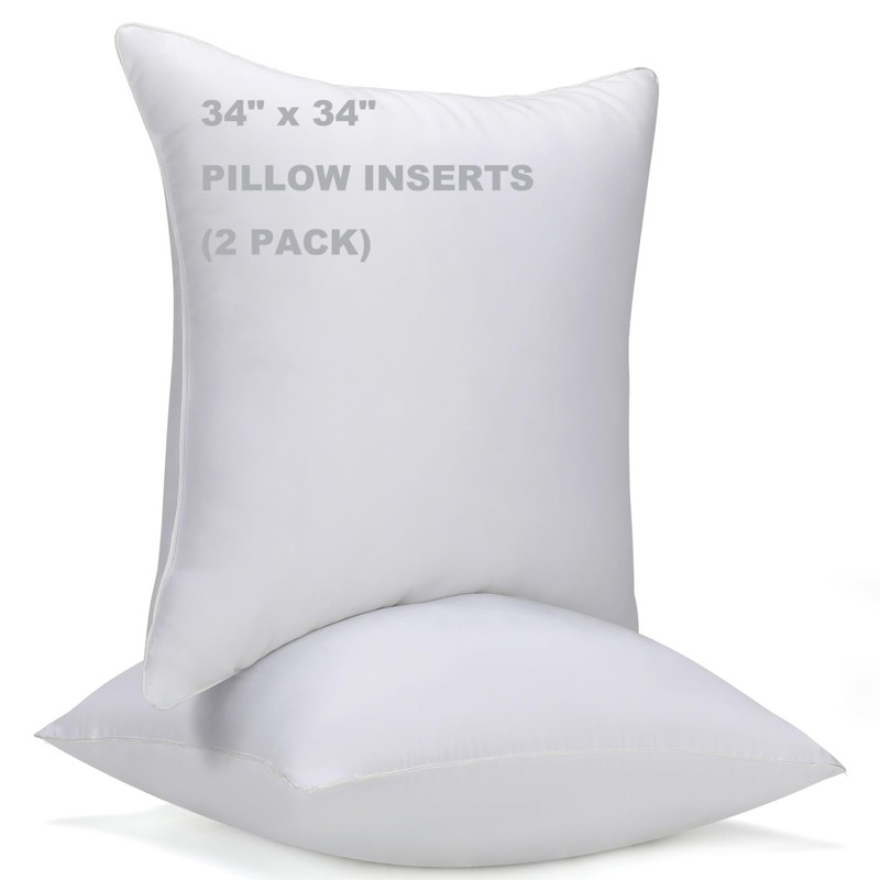 WINGLAM,Throw Pillow Inserts,Decorative Stuffer Pillows,Sham Stuffer,White,2 Pack,34x34 Inches, Hypoallergenic,Polyester,Ultra Soft,Lightweight Down Alternative,Square(2)