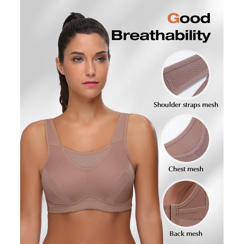 WingsLove High Impact Sports Bras for Women Full Coverage Wirefree Non Padded Workout Bras Full Support Plus Size Bra(Amber,40DD)