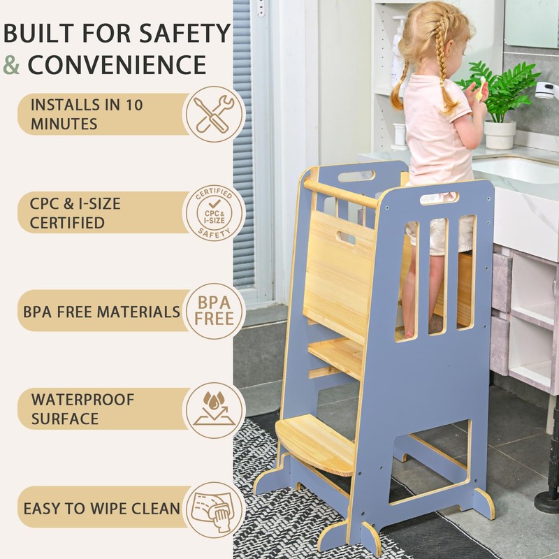 - Family Kitchen Moments & More: Sized at 16.5″ L × 17″ W × 36″ H, this stool is perfectly matched to standard countertops, letting your little one safely join cooking, baking, or washing hands. Its versatile design also works at the bathroom sink, vanity, or even craft tables, turning everyday routines into fun, shared experiences. Watch your child explore, learn, and grow with confidence in multiple spaces!