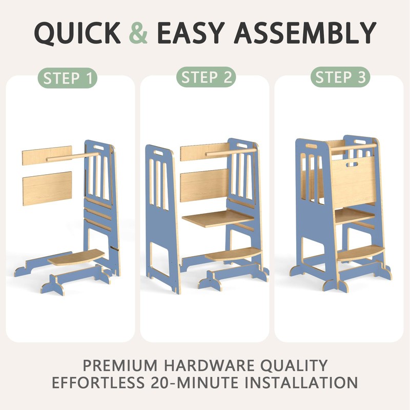 - Quick & Hassle-Free Assembly: Say goodbye to complicated setups! With numbered parts and included tools, this stool can be fully assembled in about 20 minutes by following the simple instructions. Pro tip: Each stool comes with adjustable bottom foot pads—if your floor isn't perfectly even, just tweak them for a stable, wobble-free finish. Easy, fast, and ready for your little helper to climb safely!