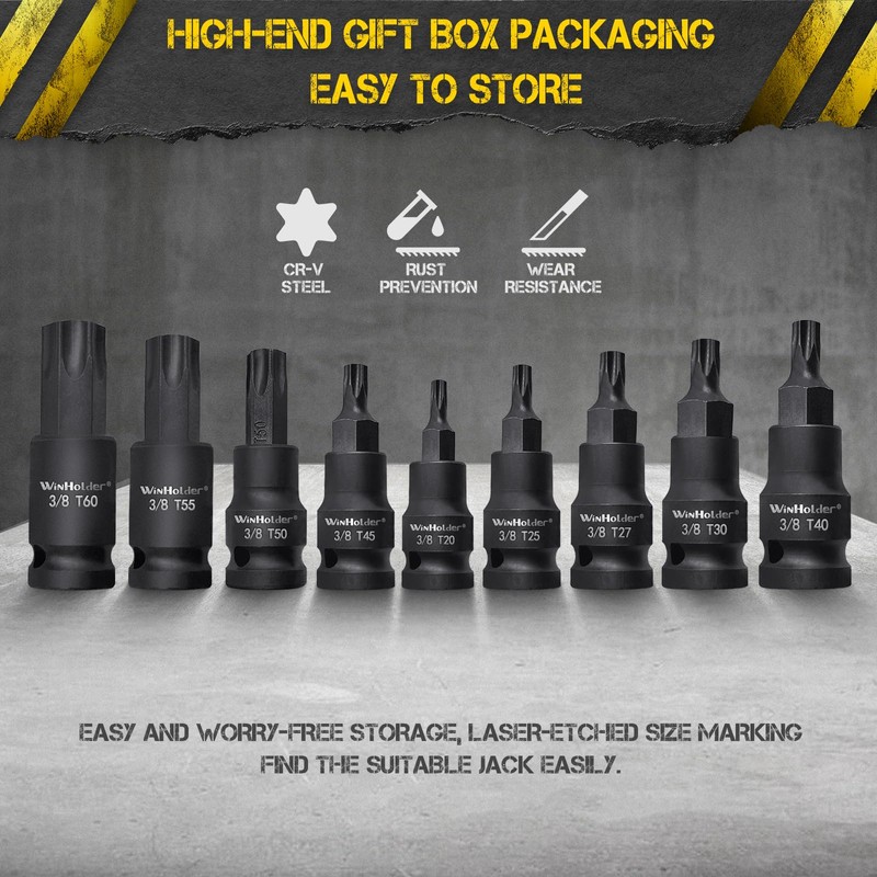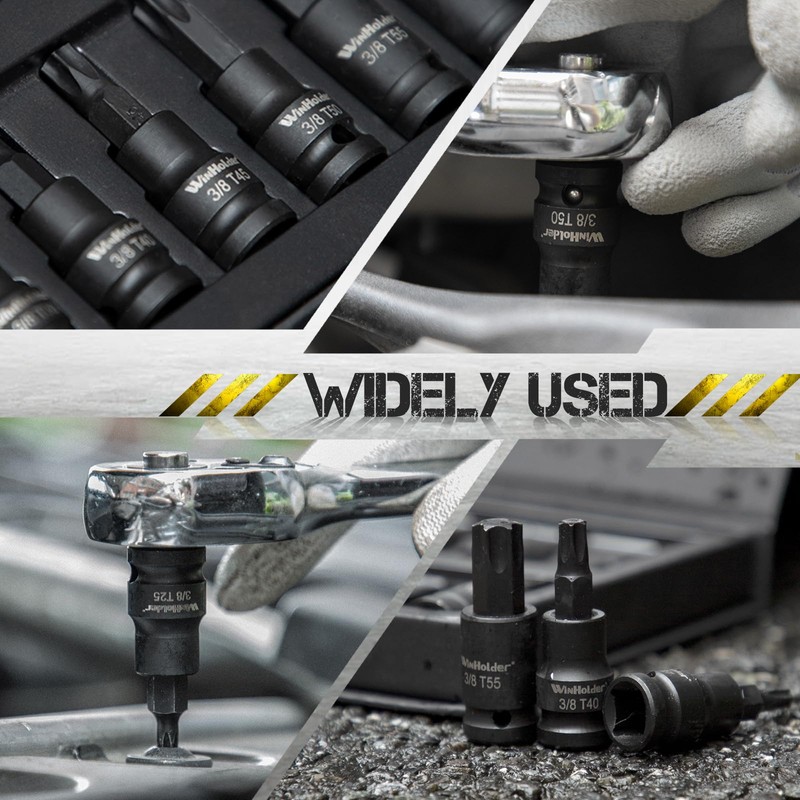 WinHolder 3/8" Drive Impact Hex Torx Spline Bit Socket Short Reach Allen Star Hand Tool Kit (9PCS Impact Torx Bits Socket)