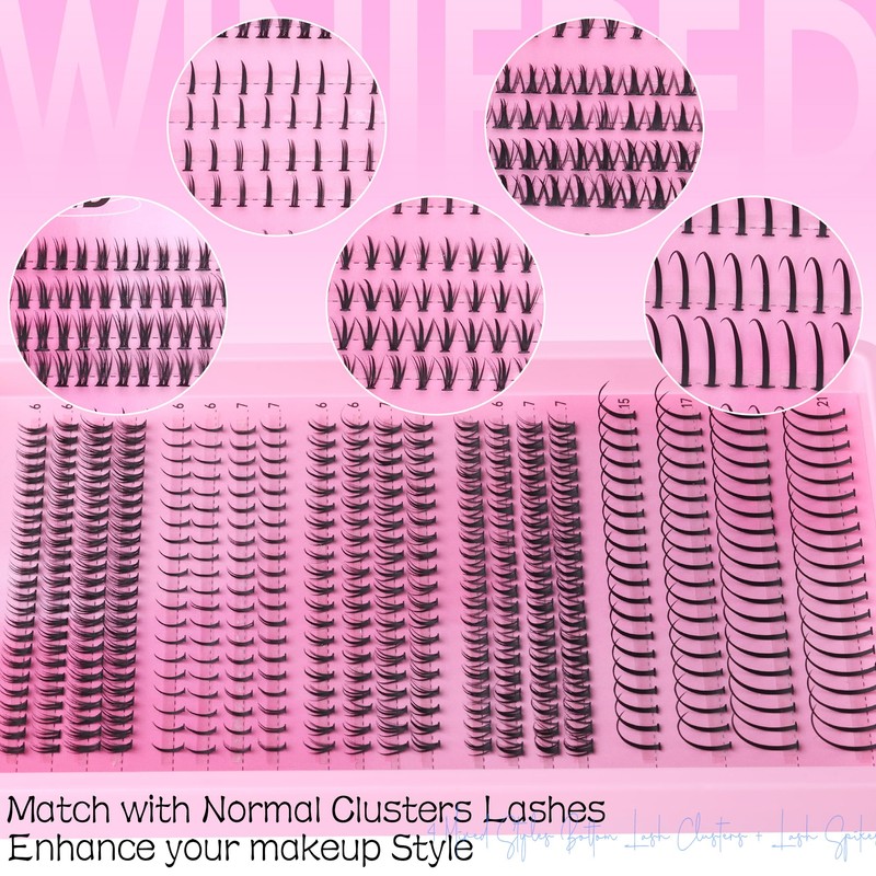 - DIY 4 Styles Bottom Lash Clusters with Spiky Clusters: Thick volume bottom cluster lashes are great for modifying your eyelash extension effect, because lower lash clusters are the key to creating a completely customized makeup style. It helps avoiding mascara results which may lead to black clumpy smudge.