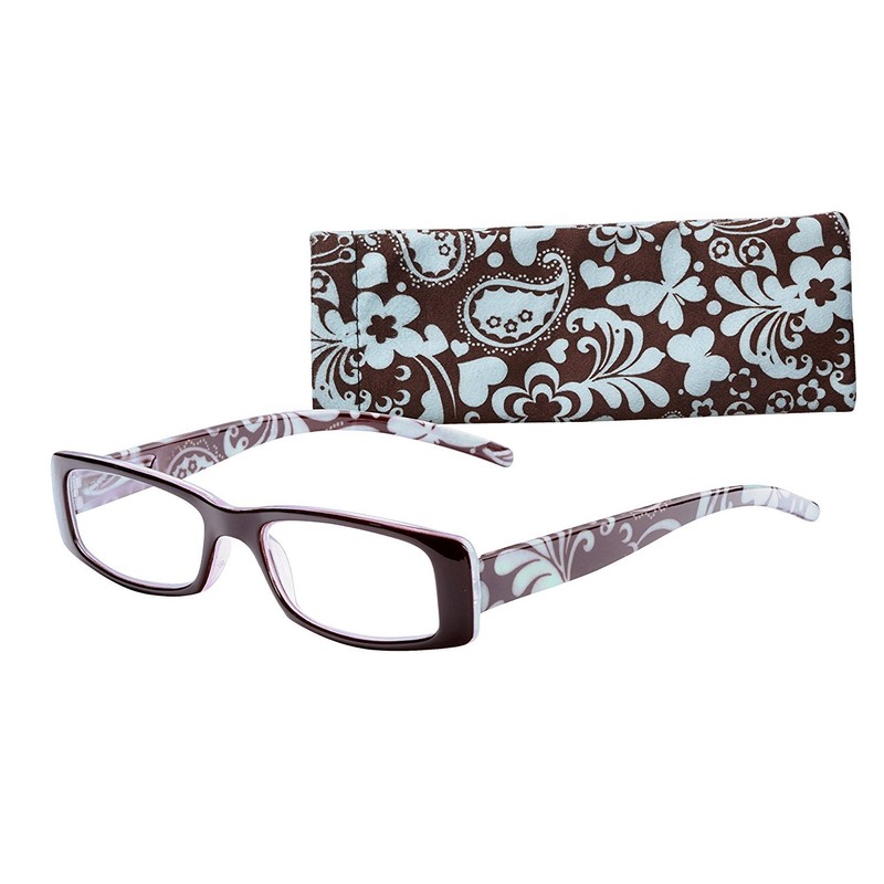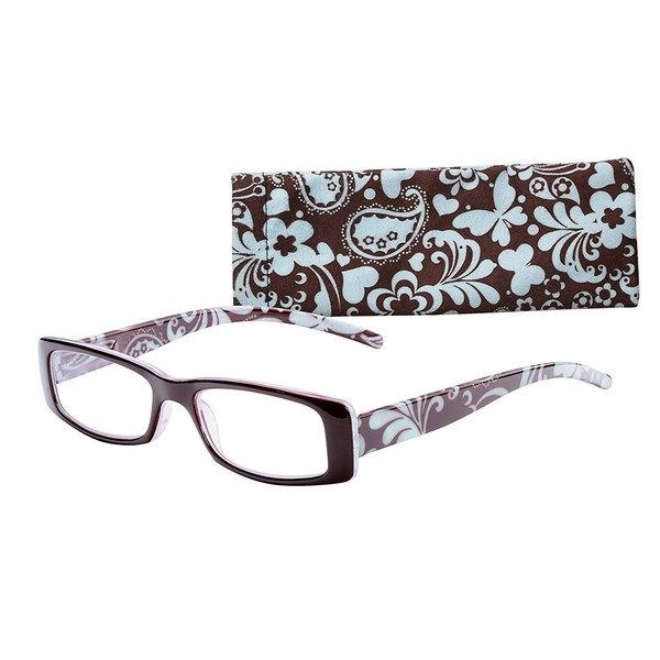 Wink Fancy Brown Floral Rectangle Reading Glass with Matching Pattern Case, 1.25, 0.200 Ounce