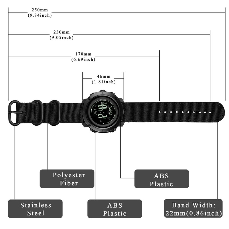 - Material & Size: High quality thick ABS case 50*46*14mm, durable and breathable PU double hollow band with stainless steel pin buckle is suitable for wrist from 6.7 to 9.0 inches. The watch is a little large, Please carefully measure the wrist size before buying.The temperature displayed on the watch is the ambient temperature, when measuring temperature, please remove away from your wrist.