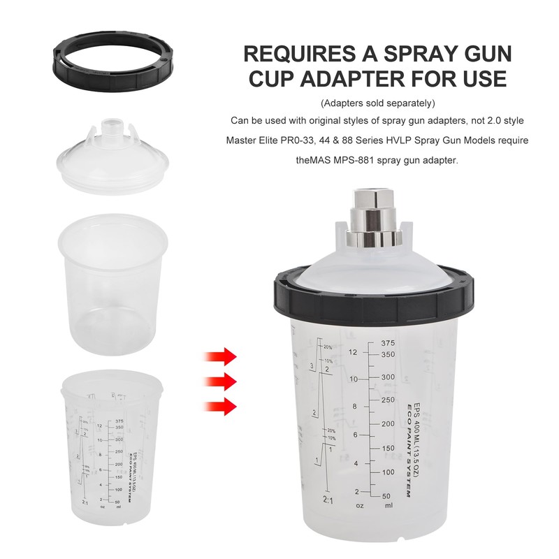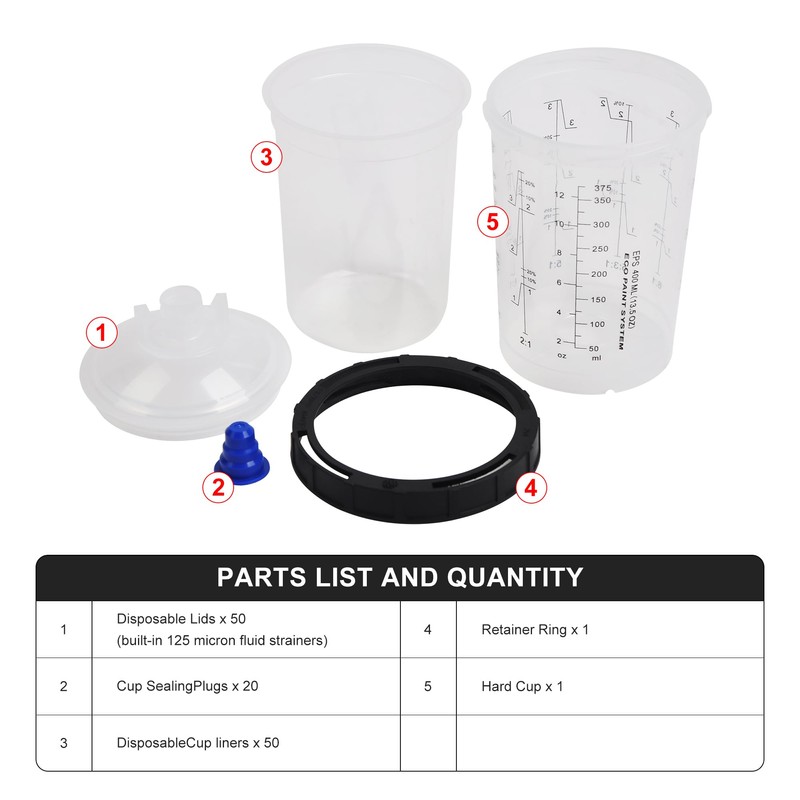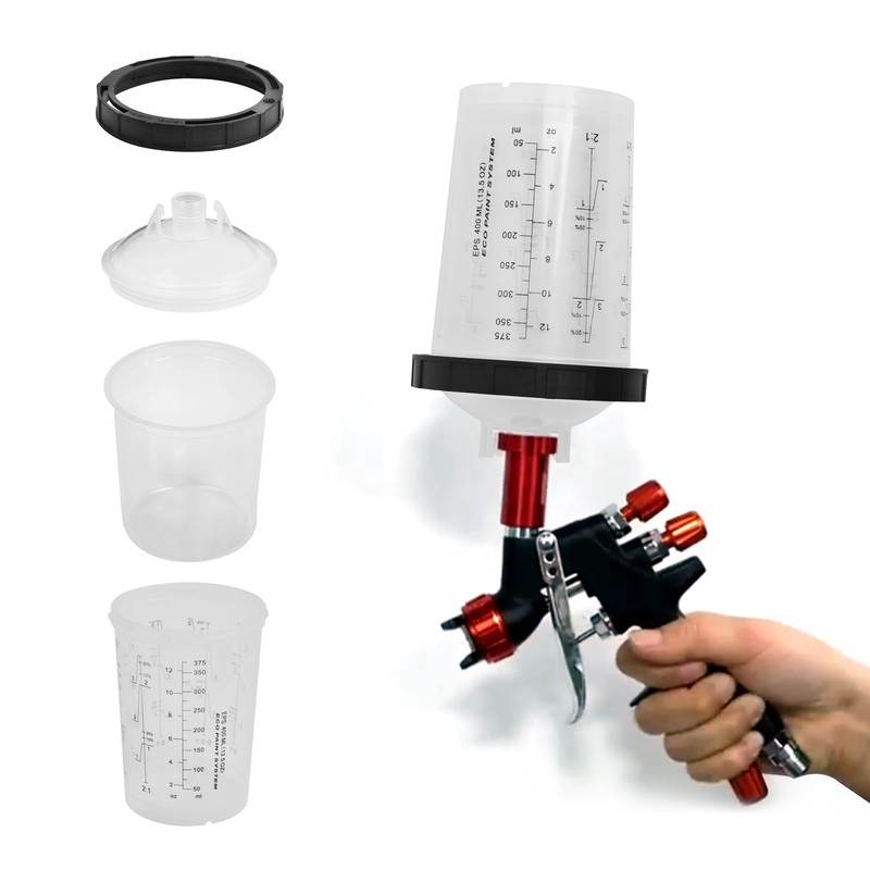 - Reduce your paint material waste and cleaning solvent waste, while at the same time eliminating the cost and labor associated with cleaning traditional metal gun cups and the need for mixing cups and paint cans.