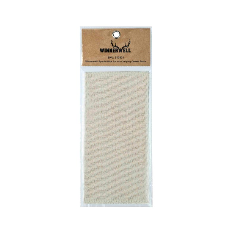 Winnerwell Special wick for iron camping stove stove. As a replacement when the wick of Winnerwell Iron Camping Cooker Stove is blown out. Made of firm flat cotton material, which ensures a bright flame and even combustion, safe to use, easy to ignite, which can last for a long time. Note: Please soak the wick in the fuel for a good half hour to saturate the wick before lighting to avoid empty burning and accelerate the consumption of the wick. Specification material: 100% cotton. Size: L x W = 200 mm x 100 mm / 7.87 inches x 3.94 inches. Net weight: approx. 17 g