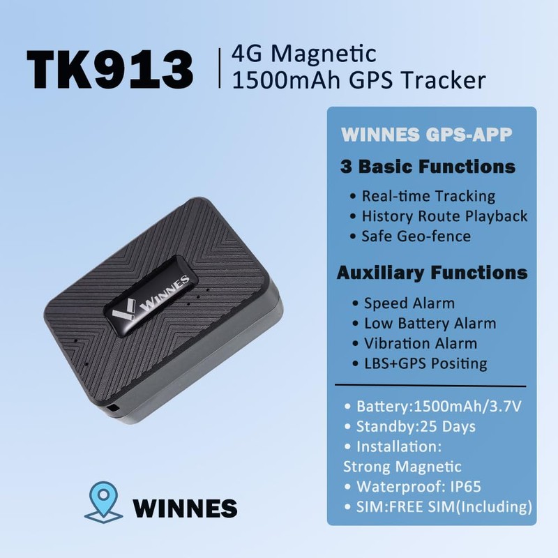 Winnes 4G Mini Rasreador GPS para Carro con Micrófono Oculto en Tiempo Real a Través de SMS/App/Web,Mini GPS para Coache con Magnetico,Alarma Anti-Robo, Límite de Velocidad y Geofence 1500mAh TK913