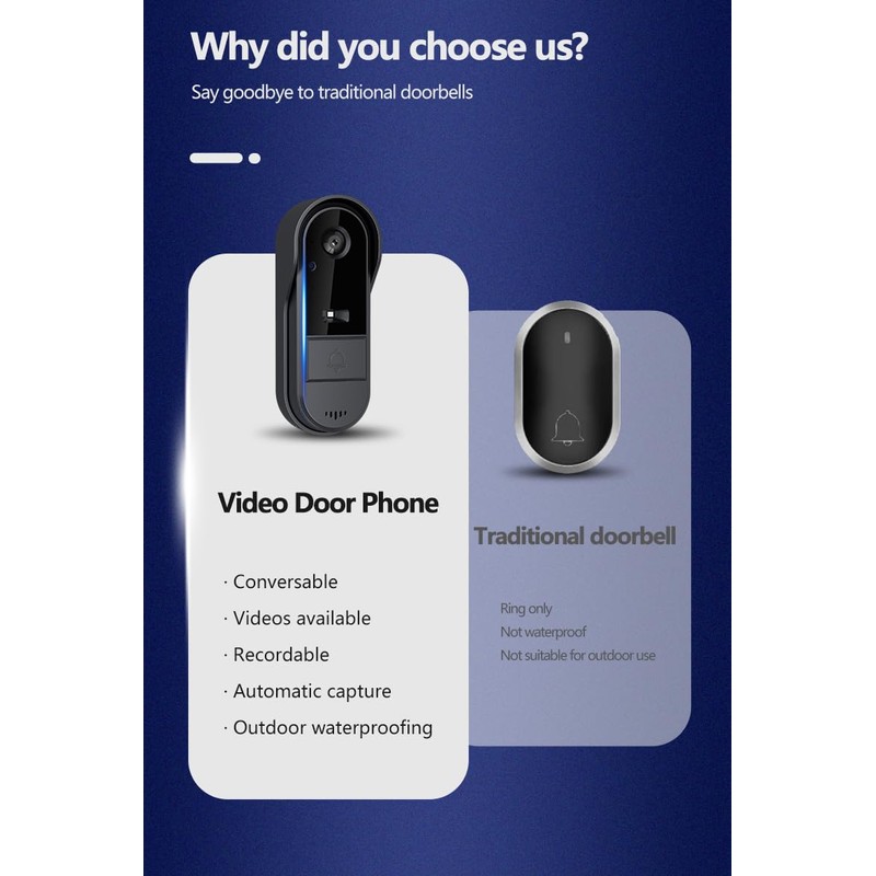 - Two-way video intercom function: doorbell wireless can realise two-way intercom function, when someone outside the door presses the doorbell, the indoor display can show the situation outside the door, barrier-free environment, the video signal can be transmitted 50-80 metres. Note: The doorbell cannot be used as real-time monitoring, moreover, if there is a fixed wall, iron door obstacle, the video signal transmission distance and signal strength will be delayed and the distance will be reduced, so before installation, please test the installation of the location of the signal reception is good.